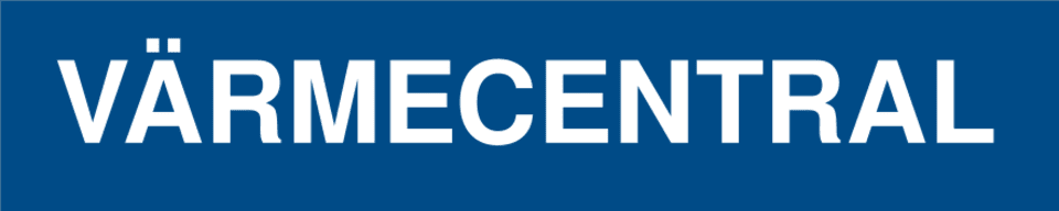 Skylt för värmecentral i aluminium.