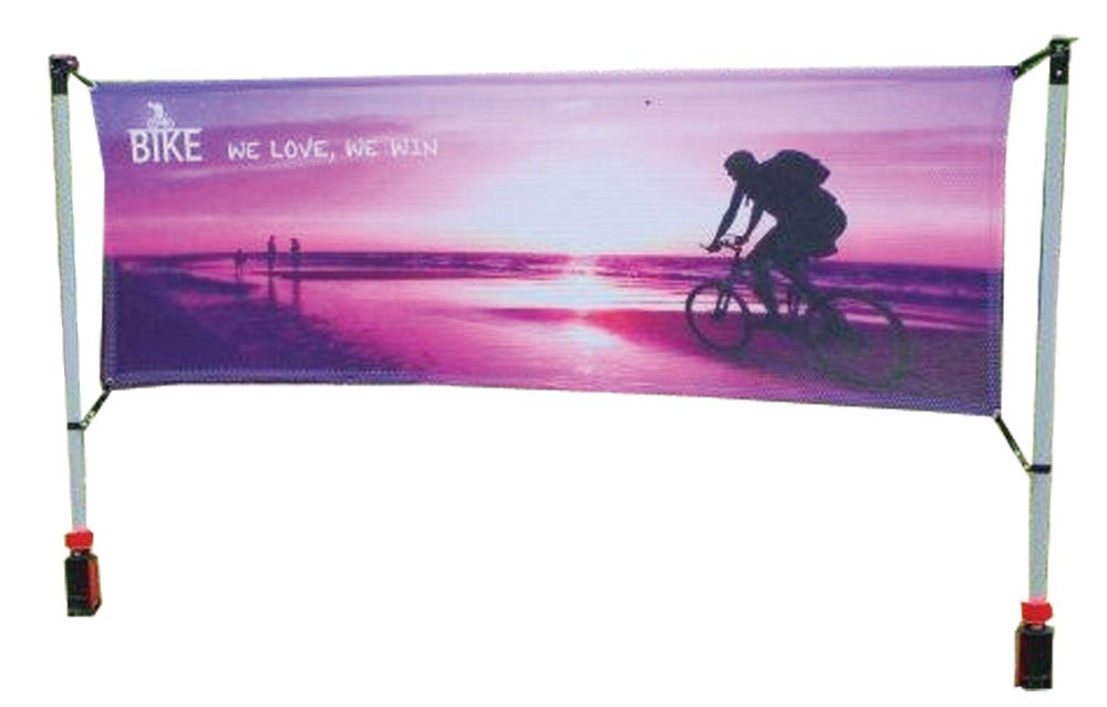 Mycket smidigt system att montera upp vepor utomhus. I paketet ingår 2st kraftiga stolpar i aluminium skruvas rakt ner i marken. Spänn upp bannern med öljett/gummiband. (Gummiband medföljer)